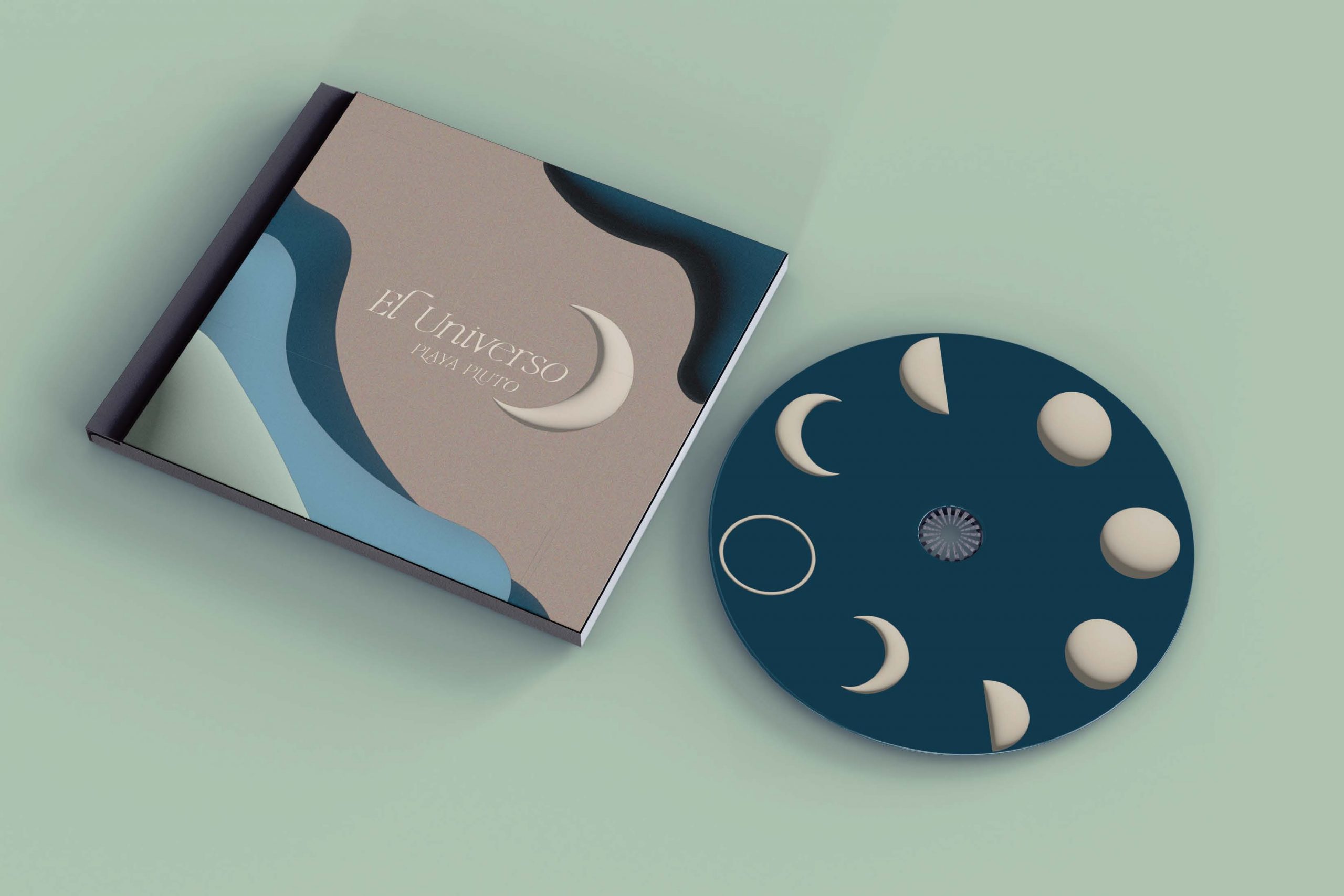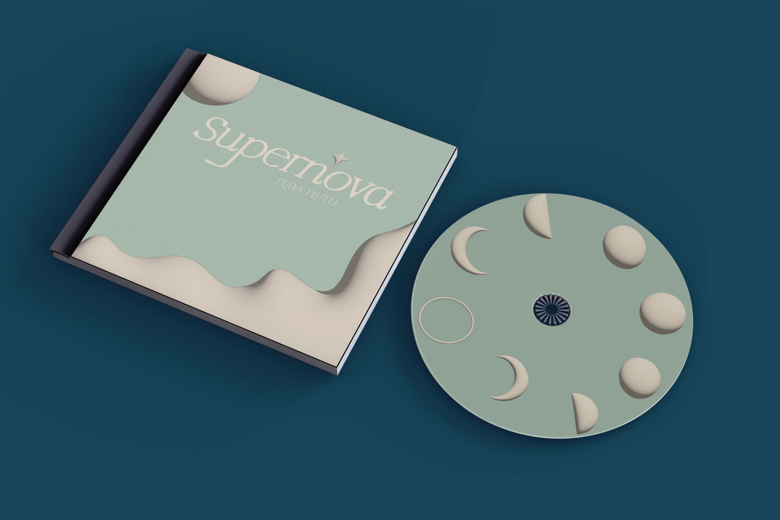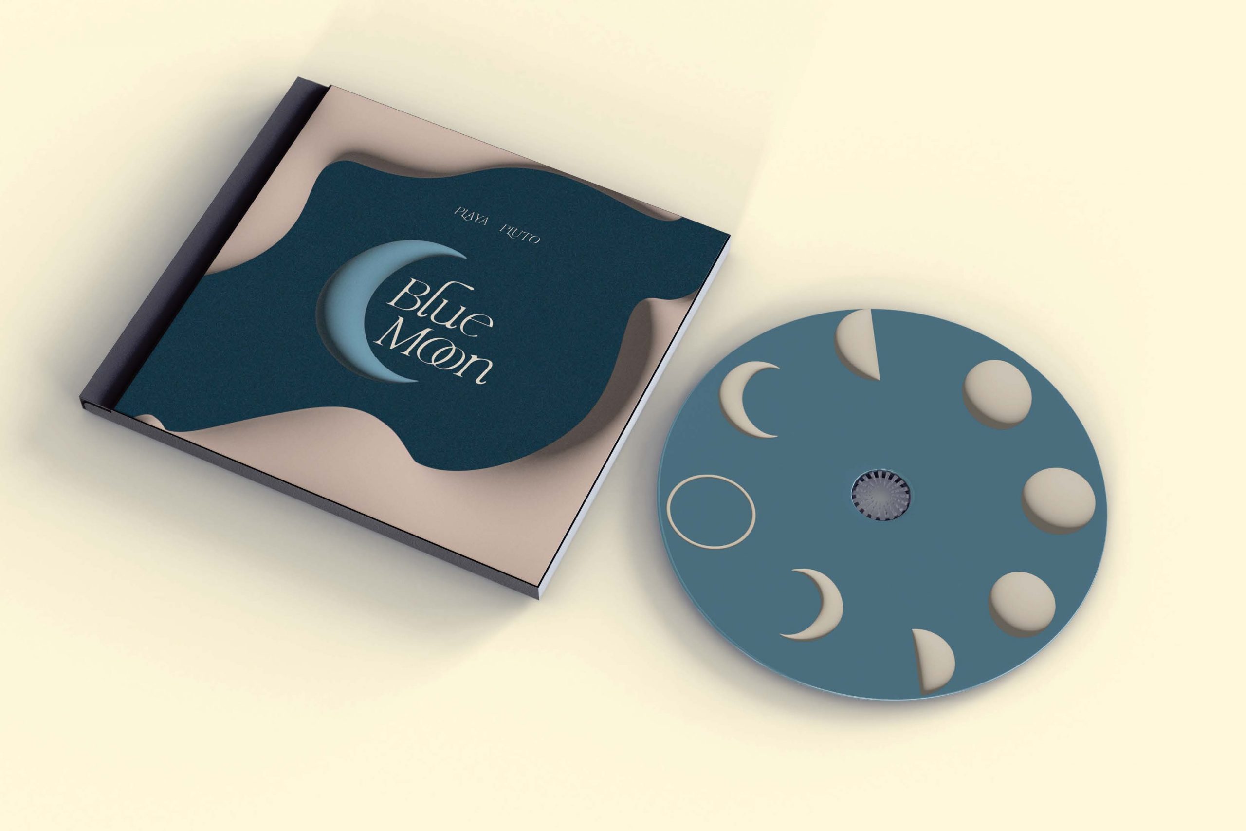 A vector design created in Adobe Illustrator, showcasing a custom CD concept and design for a band. The design includes unique artwork for the band and CD, brought to life through a polished mockup presentation in Photoshop, highlighting the final concept in a realistic setting.